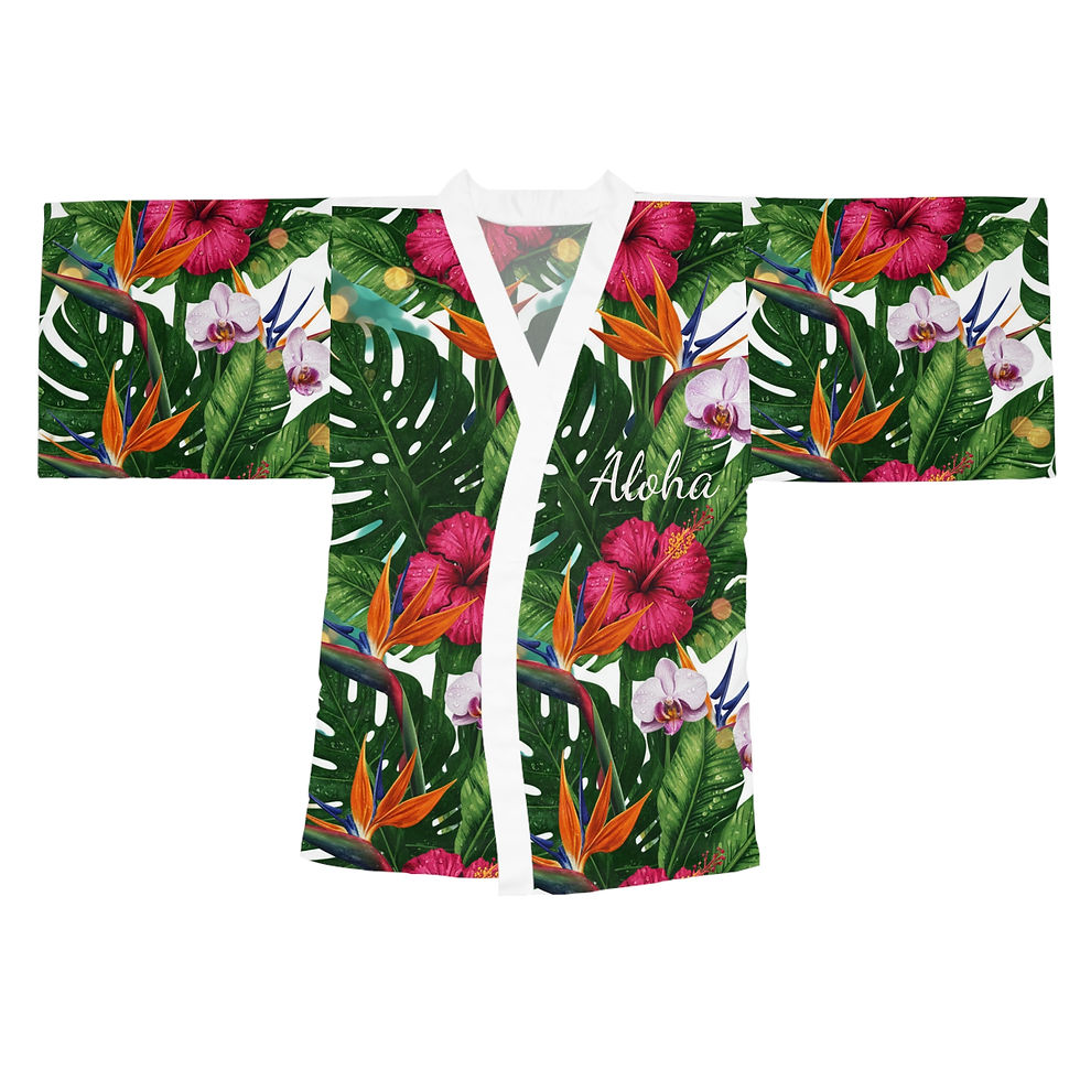 Kimono Robe — Tropical Aloha Floral Bride Long Sleeve